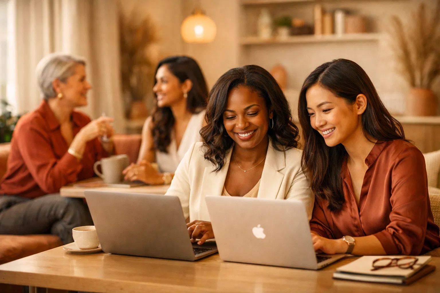 Join curated groups of women at similar career stages, moderated and facilitated by AI insights.